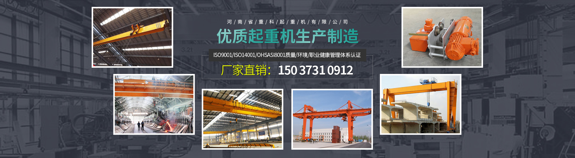 主导产品:单双梁桥式起重机、单双梁门式起重机、防爆起重机、电动葫芦、起重机配件及非标制作、冶金起重机、水工启闭机、悬挂起重机、环形起重机、门座起重机等产品。公司拥有完整、科学的质量管理体系,已通过ISO9001/ISO14001/OHSASI8001质量/环境/职业健康管理体系认证。同时获得了质量监督检验检疫总局颁发的特种设备制造许可证和特种设备安装改造维修许可证。